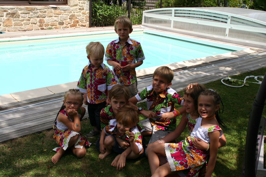 Le 12 juillet nous fêtons les anniversaires avec tous les petits enfants habillés comme à un mariage Gabonais.